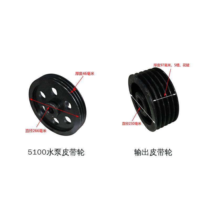 Sweeper truck fan pulley: With a diameter of 190mm, it can be equipped with 5 belts to drive the fan impeller to rotate and generate suction |